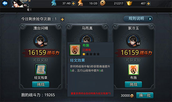 夺取经文是另一种获取方式,通过挑战其他玩家以三局两胜制争夺经文或残章。前期目标是收集强力经文,后期则侧重残章用于强化。刷新目标会消耗金币,建议前期不要过度投入,等拥有一定数量经文后再集中刷新,这样重复获取的经文会自动转化为残章,方便强化升级。强化经文消耗较大,每级需要15到120个残章,因此合理规划资源很重要。经文搭配要灵活调整,比如推图时侧重输出和生存,PVP则需针对性配置减伤或控制类经文。