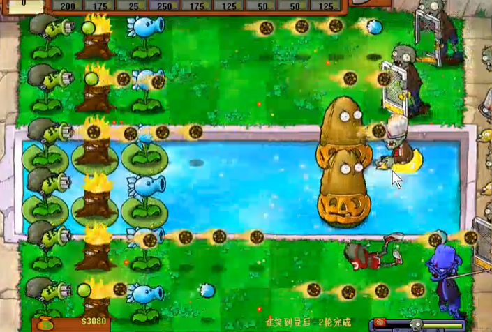 首先咱们得知道这关的初始阳光很充足,所以不用带向日葵,直接上攻击型植物就行。地刺在这关特别好用,记得在每行最右边放上三个,能有效拖住僵尸的脚步。水里的僵尸也别忽视,看到水草被吃掉要马上补种,不然防线容易被突破。前期节奏比较慢,正好给咱们布局的时间,千万别急着把阳光花光哦。