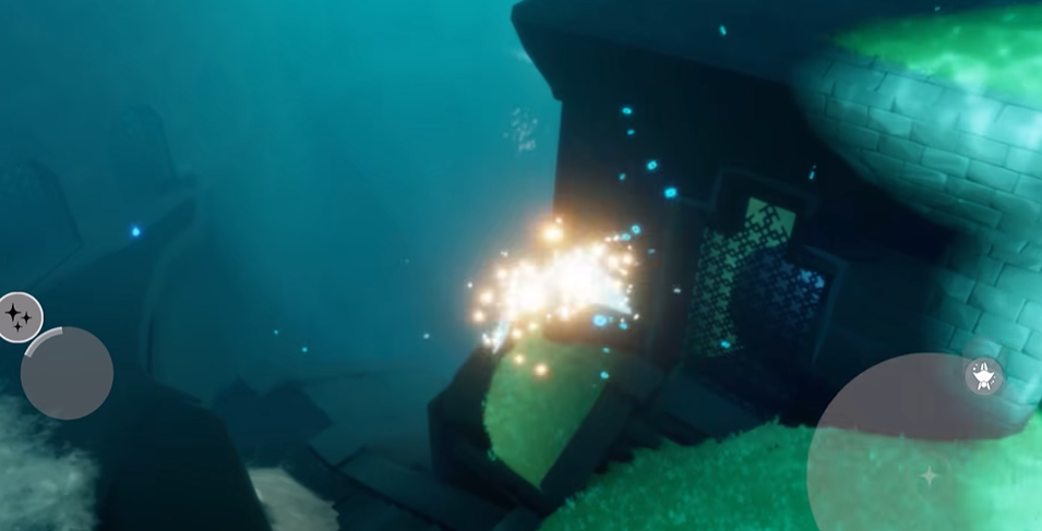 领取任务后,往前飞会看到一座矮矮的锥形塔,从塔下方潜入海底。海底有一座被铁门锁住的小房间,别担心,房间左边有个缺口可以钻进去。进去后找到机关,靠近点击手掌标志就能开启大门。完成任务后记得回去找向导先祖提交,这样才算真正完成。
