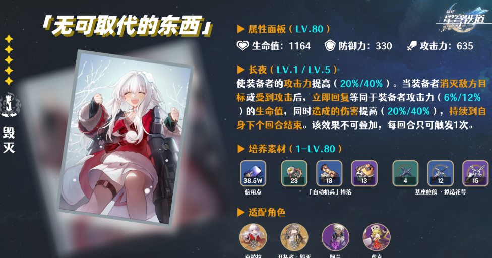 常驻池的五星光锥无可取代的东西也可以考虑,它提供了不错的生命值面板加成。虽然增伤效果不太稳定,但至少能保证刃的生存能力。另一个选择是黑塔商店的记一位星神的陨落,在击破弱点时能获得增伤,不过这个效果需要特定条件触发,稳定性稍差一些。
