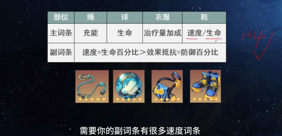 主词条的选择要特别注意,躯干部位优先选择治疗量加成,鞋子选生命值,位面球也选生命值,连结绳则要选能量回复效率。这些属性都能让白露的奶量更足,大招释放更频繁。副词条方面,速度和生命值都是不错的选择,可以根据实际情况灵活调整。