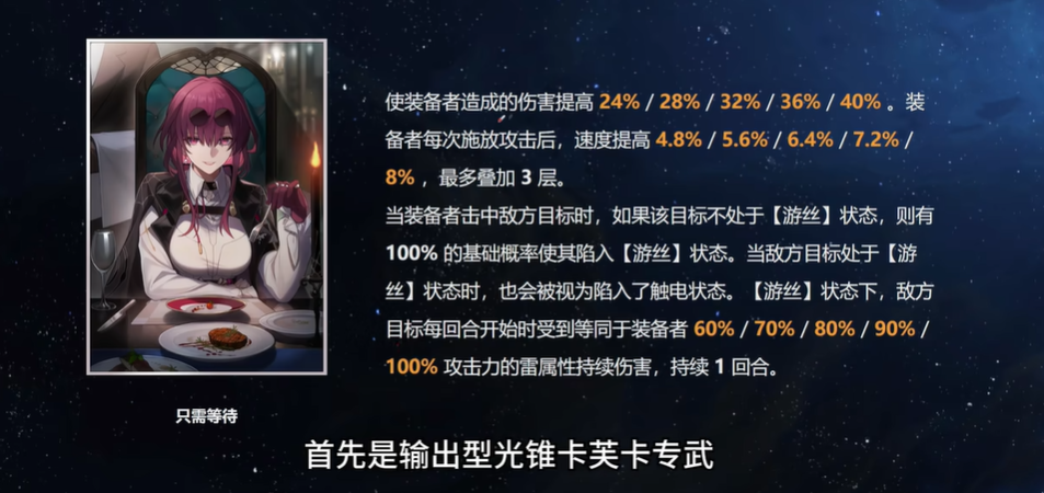 卡芙卡是当前持续伤害体系的核心角色,她的战技和终结技能引爆所有持续伤害且不消耗回合数,大幅提升输出频率。搭配桑博或桂乃芬等能附加多段负面状态的角色,可以快速叠满三层负面效果,触发真理医生等高爆发角色的增伤被动。对于没有卡芙卡的玩家,希露瓦和虎克也能通过雷、火属性持续伤害担任主力,但需要更多回合铺垫。