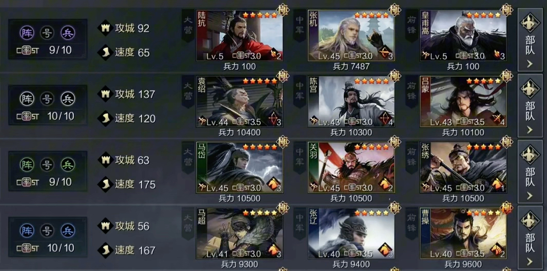 中军作为承上启下的关键位置,需兼顾输出与功能性。中军武将通常需具备一定生存能力,同时携带辅助类战法为全队提供增益或控制效果。部分武将的中军适性极强,例如具备群体恢复或debuff能力的角色,可有效衔接前锋与大营的战术配合。若队伍缺乏治疗或控制,中军位置应优先填补相应短板,而非盲目追求输出。速度属性在中军位置较为重要,先手释放战法往往能改变战局走向。