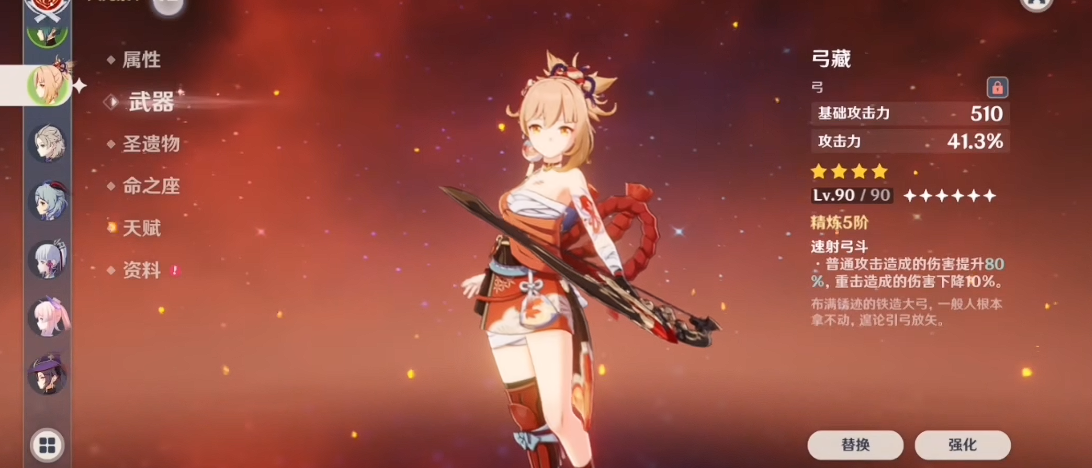 弓藏是物理输出流皇女的首选,其被动大幅提升普通攻击伤害,契合以普攻为主的站场玩法。奥兹的协同攻击同样受攻击力加成影响,因此弓藏的副属性与特效能最大化皇女的持续输出能力。若玩家倾向速射打法,精炼后的弓藏可进一步缩短输出真空期。