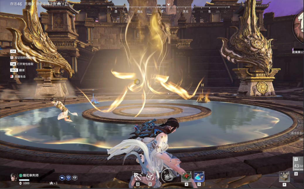 进入圣火广场地下密室需通过两个固定入口,分别位于广场边缘。密室内部设有滚轮陷阱,需谨慎躲避。墙壁上的四组箭头对应地面四座圣鹰雕像的朝向,箭头方向遵循上北下南左西右东的规则。玩家需按逆时针顺序记录箭头指向,返回地面后依次攻击雕像调整方向。若箭头提示左上雕像朝南,则需将左上雕像转向钟楼方向(默认北方)的相反方向。解密成功后,广场中央将刷新飓风客宝箱。