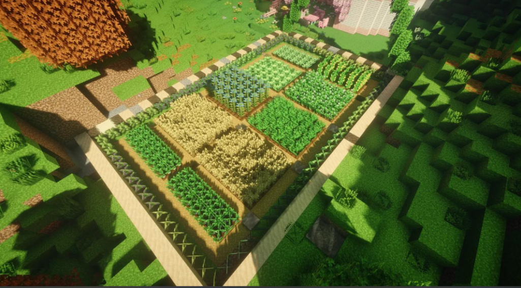 农田是村庄的重要部分,小麦、胡萝卜、土豆这些作物可以养活村民。划出一片平整的土地,用锄头耕地后播种。附近放上水源和堆肥桶,方便村民自动收割和种植。如果想养动物,可以用栅栏围出牧场,养些牛、羊、鸡,提供食物和资源。