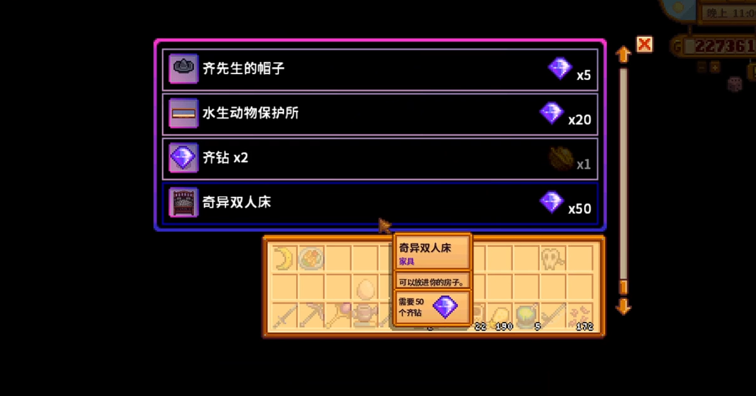 地精商人和杂货商车提供了直接购买齐钻的机会。地精商人位于星露谷旅游区,每日商品随机刷新,虽然出现概率较低但确实会出售齐钻。杂货商车每周五和周日出现,偶尔也会售卖齐钻。这两种方式都需要玩家准备足够的货币,适合资金充裕的情况。