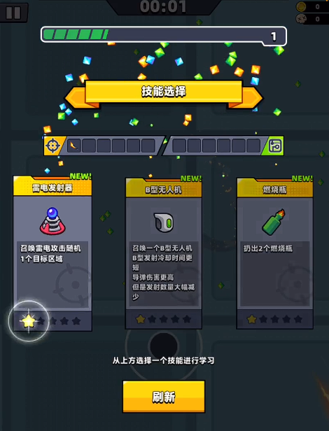 先把守卫者升到三级形成基础防御,接着提升雷电发射器的范围和眩晕几率。无人机要尽早拿到B型配件让导弹数量翻倍。被动技能首选运动靴增加移速,其次是强力弹头和能量块。如果遇到弹射之花这类会反弹攻击的BOSS,记得贴近障碍物卡视角,等它释放分裂弹时快速横向移动。