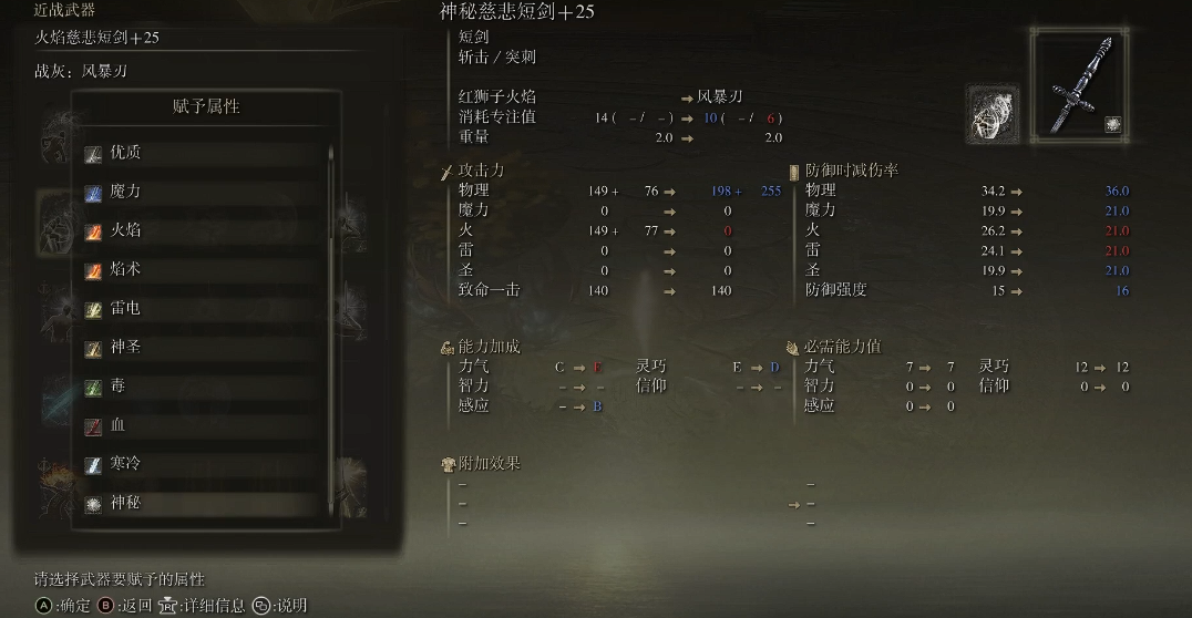 神秘质变是游戏里感应流派的核心玩法之一,它能让武器获得感应属性加成,特别适合那些喜欢堆感应属性的玩家。这种质变方式需要先拿到漆黑砥石刀道具才能解锁,有了它之后就可以在赐福点通过战灰系统给武器赋予神秘属性。武器经过神秘质变后,面板伤害会根据感应属性高低发生变化,感应越高伤害加成就越明显。