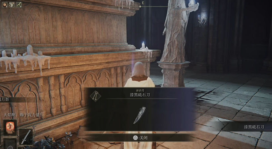 获取神秘质变的关键道具漆黑砥石刀,需要先击败碎星拉塔恩。打完这个BOSS后,宁姆格福地区会出现一个被流星砸出来的大坑,从这里跳下去就能到达永恒之城诺克隆恩。在探索这片区域时要留意一座教堂建筑,漆黑砥石刀就藏在仿身泪滴BOSS附近。拿到这个道具后,神秘质变的大门就向你敞开了。