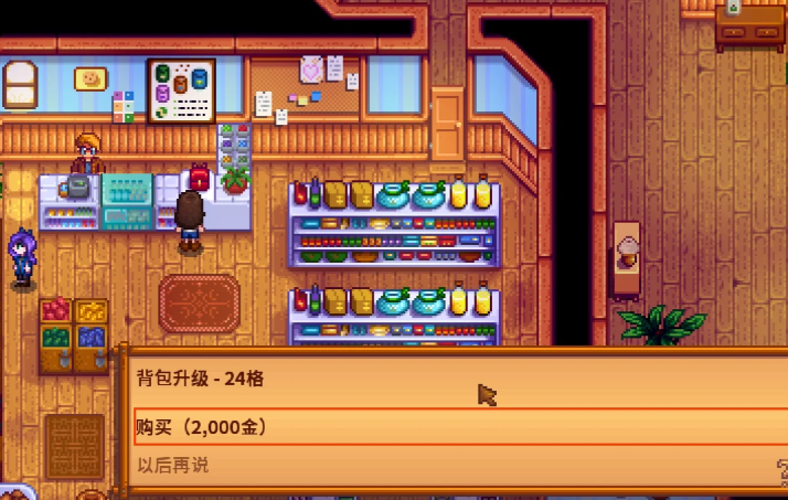 前往皮埃尔杂货店是背包扩容的首要步骤。该商店位于鹈鹕镇中心区域,营业时间为除周三外的上午9点至下午6点。进入商店后需确认店主皮埃尔在岗,否则无法进行交易。在收银台右侧可见标有红色背包图标的交互区域,点击后即出现升级选项界面。第一次升级需准备2000金币,将背包容量从12格提升至24格。