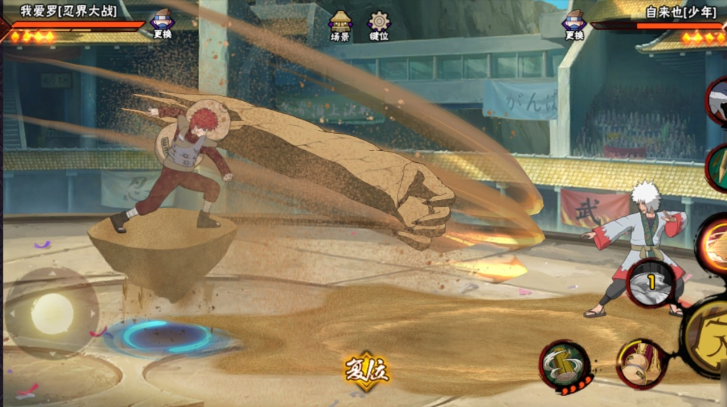 玩好忍战我爱罗,首先得熟悉他的技能机制和能量条系统。这家伙的核心在于灵活切换地面和空中形态,普攻和技能都能随时起飞,空中移速还特别快,适合拉扯和消耗。一技能砂之怪腕第一段带抓取效果,第二段吸沙子能涨能量条,长按吸得更快但CD也更久。二技能流砂瀑流两段都有扫地效果,但第二段会消耗能量,别随便乱用。能量条攒满后能自动生成护盾,这可是保命的关键,记得控好节奏别让盾白白浪费。