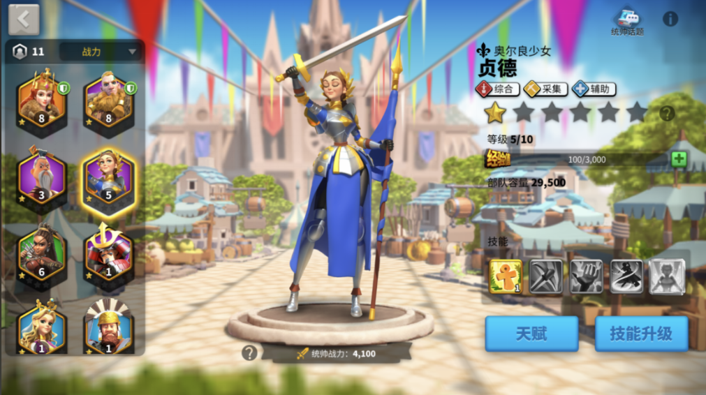 T2兵种的生产需要稳定的资源支持,尤其是粮食、木材和铁矿。优先升级军营、靶场和马厩至12级,这是训练T2兵种的最低建筑要求。仓库和医院的等级也不容忽视,前者保障资源安全,后者减少士兵伤亡带来的损失。联盟帮助可以缩短建筑升级时间,建议加入活跃联盟以最大化效率。资源采集类武将如贞德能提升采集速度,确保T2兵种训练的资源供应。