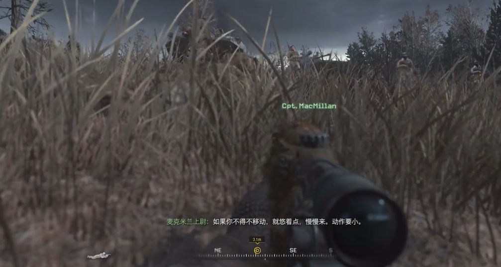 进入平原区域后,会遭遇装甲车队和大量步兵巡逻。必须完全静止趴伏,利用环境遮蔽物如废弃车辆或树木掩护。若被敌人逼近,可缓慢横向移动调整位置,但切忌站立或开枪。麦克米兰会提示关键时机,例如敌人视线转移的瞬间,可短暂起身转移至下一隐蔽点。狙击环节需优先清除高价值目标,如敌方狙击手或军官,使用消音武器可减少暴露风险。