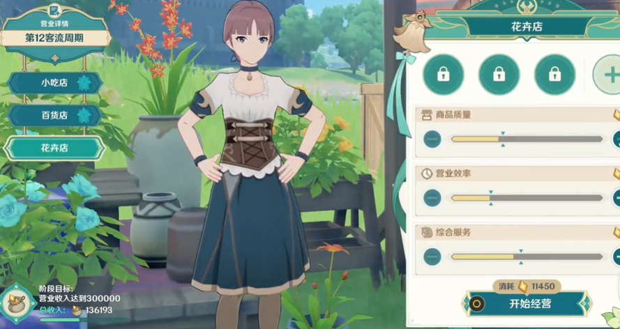 中期会解锁杂货店、小吃店和花卉店三家店铺,需要同时管理。资金是共用的,但策略只能单独分配,所以得谨慎安排。突发事件和意外状况经常出现,比如要求调整策略或完成小目标,这时候灵活应对才能保证收入稳定增长。别忘了多查看各店铺的经营情况,通过页签可以快速切换。