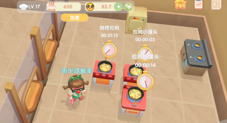 还有一种方法是在尼克的餐厅制作小馒头,但需要厨师的等级达到二级才能使用烤箱。对于刚入门的新手来说,这个条件可能有点难度,建议先通过自己的餐厅完成任务积累经验。等到厨师等级提升后,再去尼克的餐厅会更方便,毕竟烤箱制作的效率更高。