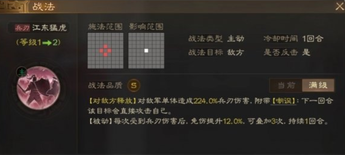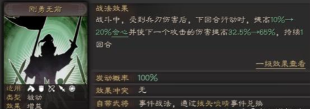 通过合适的战法搭配,孙坚的输出能力还能再上一个台阶,比如携带刚勇无前和绝地反击的组合,可以在周泰和锋矢阵的增伤效果下,让他的伤害更加爆炸,实战中经常能看到打出上万点的兵刃伤害。如果选择后发制人这类反击型战法,配合孙坚自带的嘲讽机制,能让他每回合都稳定反击,叠加起来的总输出就非常可观了。兵书方面像胜而益强和执锐都能直接提升武力属性或增伤效果,这样孙坚在队伍中就能担当核心输出来使用。