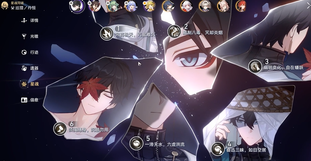 丹恒的战技和终结技是输出的核心,应该优先点满。战技云骑枪术·朔风的妙处在于,其多段攻击只要有一段暴击就能触发减速,这意味着即使前期暴击率不高,也有不错的触发期望,到了后期暴击堆起来后几乎能稳定给敌人上减速。终结技洞天幻化,长梦一觉则是他的王牌,满级基础倍率就很高,攻击减速目标时还能获得额外倍率加成,是决定性的爆发手段。天赋寸长寸强提供的风属性抗性穿透是重要的独立增伤乘区,需要通过队友对他使用技能来触发。额外能力推荐先点绝影,攻击后有概率提升自身速度,配合战技的减速,能有效提高丹恒的行动频率,打出更多伤害。