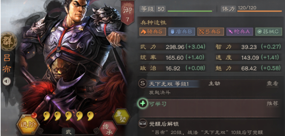 用吕布单开主要指的是在游戏前期,尤其是在开荒阶段,尝试以吕布作为核心或唯一输出点来快速占领资源地、提升势力值。吕布作为游戏中武力天花板级别的武将,其自带战法天下无双的决斗机制能打出极高的单点爆发伤害,这为他单兵作战提供了一定的资本。他的高统御值和相对脆弱的生存能力也是必须直面的难题,这意味着你需要更精细地规划资源分配和战法搭配,才能让这位飞将在开荒期不仅不掉队,还能成为你的强力矛头。