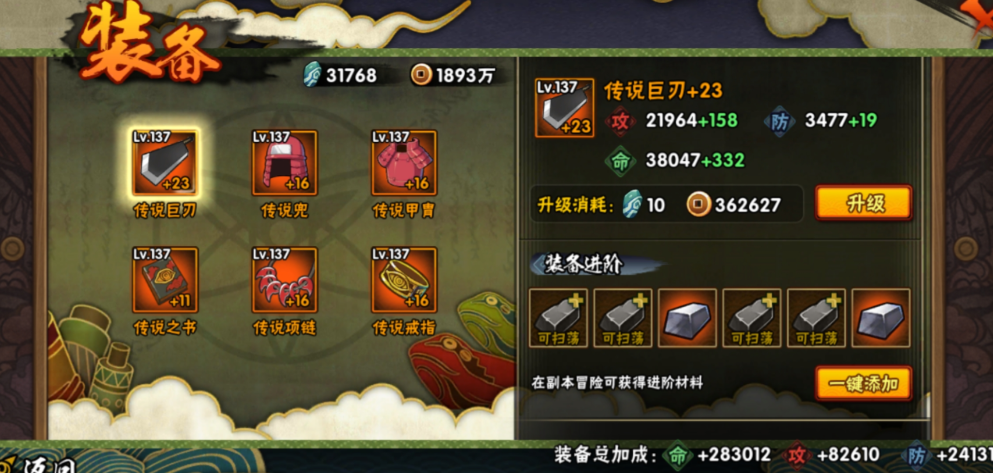 确定了培养对象,接下来就是怎么养的问题了。资源分配是门学问,首先要确保你的主力角色等级和技能等级跟得上。经验药水要优先喂给他们,技能点也要优先加满核心的输出或控制技能。装备方面,记住一个口诀:先武器,再饰品。武器和饰品对攻击力的提升最为直接,能让你打副本和任务的效率大大提高。铜币前期可能会觉得用不完,但中后期会非常紧缺,所以要合理规划,优先用在组织贡献和装备强化上,前期不建议在忍者修行上投入过多。每天购买三次体力性价比很高,主要用于刷取主角和核心角色的觉醒材料,这是提升战力的基础。