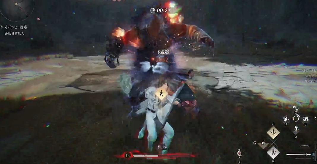 在应对小十七的投掷攻击时,玩家需要掌握卸势时机,及时按下卸势键来挡下攻击,避免队友受到高额伤害。小十七的部分攻击前摇较长,但变招突然,玩家应保持警觉,利用闪避或无敌帧技能来躲避。在二阶段,小十七的攻击欲望增强,武器上会出现火焰特效,此时可以使用摄星拿月奇术强行打断其状态,防止被秒杀。小十七进入二阶段后,攻击力大幅提升,会使用新的技能如拔出石剑并涂抹黄色火焰,玩家需要迅速后撤拉开安全距离,避免被剑气击中。