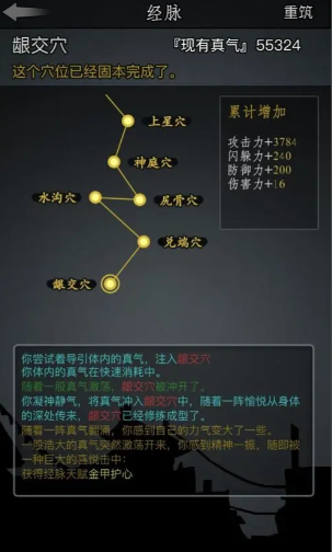 经脉天赋是加点过程中不可忽视的另一核心,它与属性加点相辅相成。每打通一条完整的经脉,你都能够随机获得一项天赋,这些天赋会提供额外的基础属性加成或特殊战斗效果。在众多天赋中,福源类天赋被普遍认为对综合属性的提升最为显著,应当优先保留。容貌类天赋虽然在中后期才开始发挥重要作用,但它能通过经脉加成间接提升闪躲、攻击等关键属性,因此也值得关注。合理选择并搭配天赋,能让你的角色在战斗中获得巨大优势。