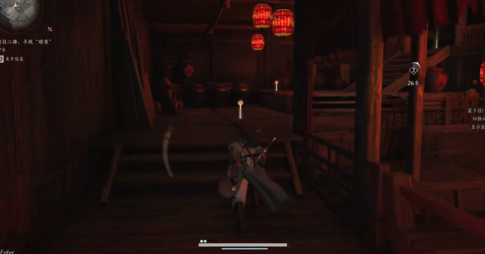 进入鬼樊楼后会触发一段剧情动画,随后玩家将面临多轮战斗。你需要先后击败五名鬼樊楼的小弟和三名挑战者,最后面对一个小头目葛峰。击败葛峰并救出鬼樊楼中的妇人后,可以从她那里得知关于暗房的信息,从而推动任务继续发展。整个探索过程融合了潜行、战斗与解谜,是游戏前期一个颇具挑战性的关卡。