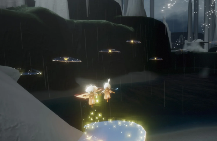 如果能量不够的话,可以先在雨林最后一个亭子停下来,等雨停了再去拿火之灵。因为它的位置比较高,能量不足的小伙伴可能会飞不上去。这时候可以借助附近的光蝶帮忙,它们会带着你飞向高处,省力又方便。记得抬头看天空,火之灵会以一道闪亮的光芒出现,非常显眼哦。