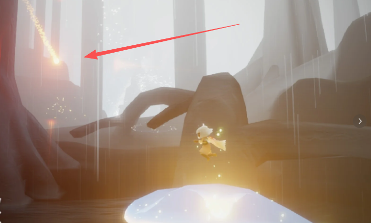 得到火之灵,首先需要来到雨林的第三个场景。进入地图后一直往前走,走到可以躲雨的地方停下来,这时候往右边上方看,会发现一群光点组成的路径。跟着这些光点飞就能到达一片特殊的森林区域,这里的氛围会变得苍白,而火之灵就是那团橙色的光芒,飞过去触碰一下就能收集到啦。