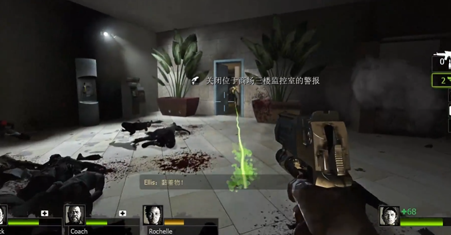 咱们从安全屋出发后,先别急着冲出去,记得检查下装备和队友状态。出门右转再左转就能看到手扶电梯,直接上到二楼。二楼区域有不少补给点,但同时也埋伏着僵尸群,建议先清