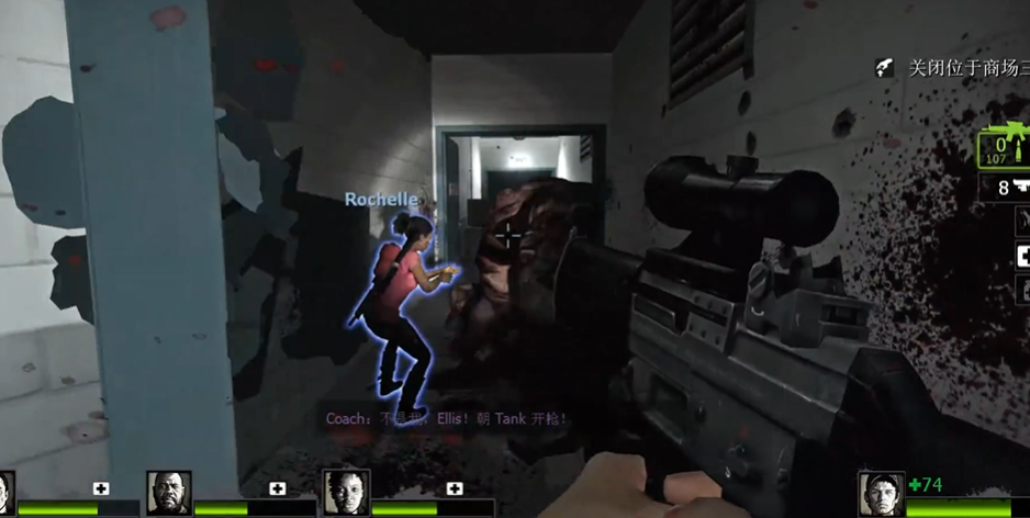 这时候左转就能看到通往三楼的手扶电梯,上去后安全屋标志已经清晰可见。不过别放松警惕,三楼僵尸数量最多,特别是特殊感染者经常埋伏在拐角。建议用重火力开道,近战队员随时准备应对突袭。如果听到女巫哭声,立刻停下脚步找掩体,等她离开或集火秒杀。