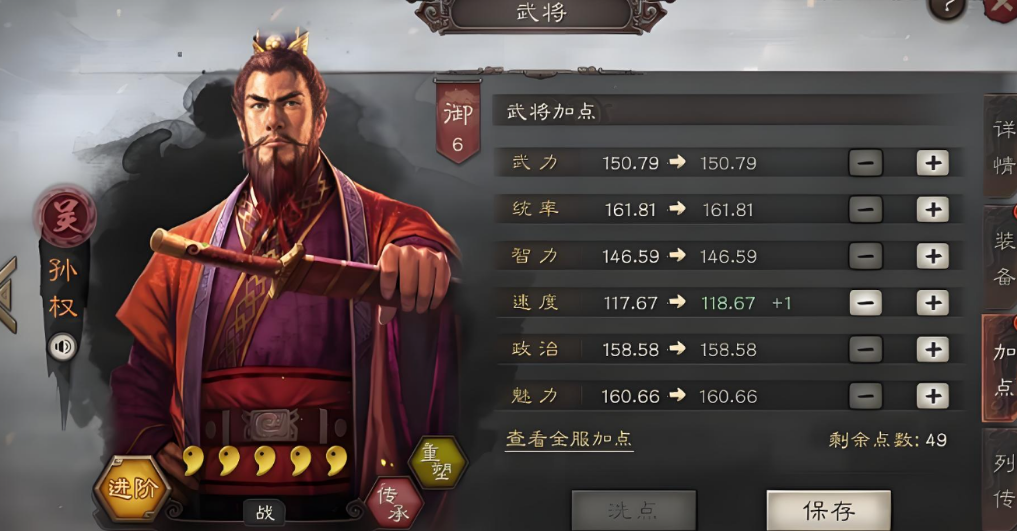 属性点的分配需要根据武将定位进行合理规划,武力型武将优先加武力,谋略型则侧重智力,速度属性则影响出手顺序。不同属性会对武将的能力产生直接影响,比如武力影响普通攻击和兵刃输出伤害,而智力则影响谋略防御能力和输出伤害。在加点时要仔细思考武将的战场定位,千万别把所有属性点都堆在同个方向上,合理分配才能让武将发挥最大效用。记得每次进阶都需要消耗同名武将卡,所以遇到核心武将的重复卡千万别随便拆解或转化,留着进阶才是最优选择。