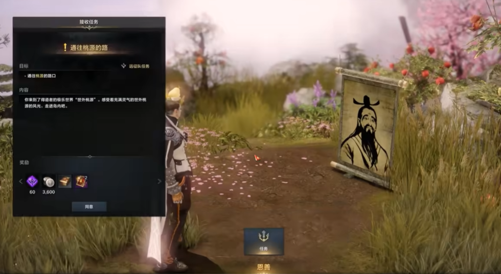 解锁世外桃源岛的隐藏任务,首先得找到这个神秘岛屿的位置。它藏在岛中心的山脚下,地图上会随机刷新三个位置,记得提前做好准备哦。登岛后记得和NPC恩善对话接取通往桃源的路任务,完成后会拿到春之歌乐谱和运气调息动作,还有兑换材料饱满的桃子和武陵花的露水,这些都是后续任务的关键道具。