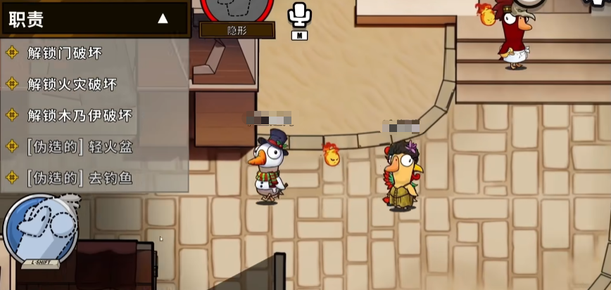 隐形狼作为鹅鸭杀中鸭子阵营的核心角色之一,其隐身机制是玩法精髓所在。该角色按下Shift键后可进入持续5秒的隐身状态,期间视野变为灰色,仅能通过左侧空格键亮起提示判断目标位置。隐身期间发动攻击不会解除隐身状态,但需注意技能冷却时间与行动暴露风险。