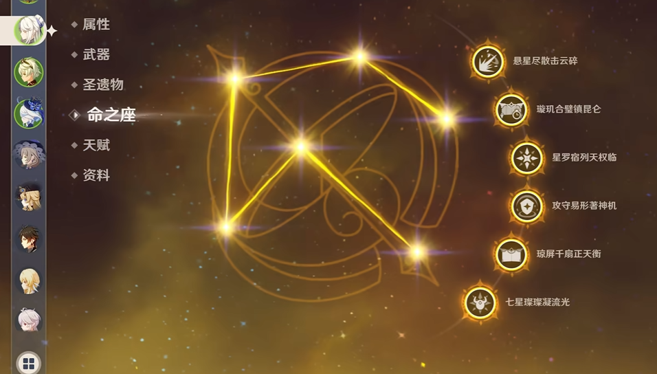 四风原典和尘世之锁等五星武器强化站场输出,适合搭配双岩双火阵容;流浪乐章则更适合速切玩法,配合元素爆发打出爆发伤害。圣遗物方面,2磐岩+2攻击的搭配最为通用,时之沙选择攻击百分比,空之杯必选岩伤加成,理之冠根据武器词条平衡暴击暴伤。元素精通对凝光收益较低,词条优先级应倾向于双暴和攻击力。