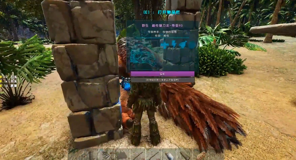 成功驯服后,镰刀龙会成为你的得力助手,既能打架又能采集资源。它的鞍具得到69级才能解锁,所以前期可能暂时骑不了。驯服期间如果觉得太耗时间,可以试试用困龙房或者陷阱把它卡住,这样能更安全地慢慢磨。