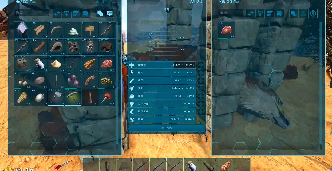 首先需要在高山或悬崖区域寻找狮鹫,这类生物通常栖息在地图的高海拔地带,尤其是Ragnarok地图的狮鹫峡谷或Scorched Earth的特定区域。准备阶段必须携带足够的麻醉箭或麻醉镖,建议使用长管步枪或十字弩提高命中率,同时备好生羊肉或优质生肉作为饲料,异特龙蛋饲料能大幅缩短驯服时间。