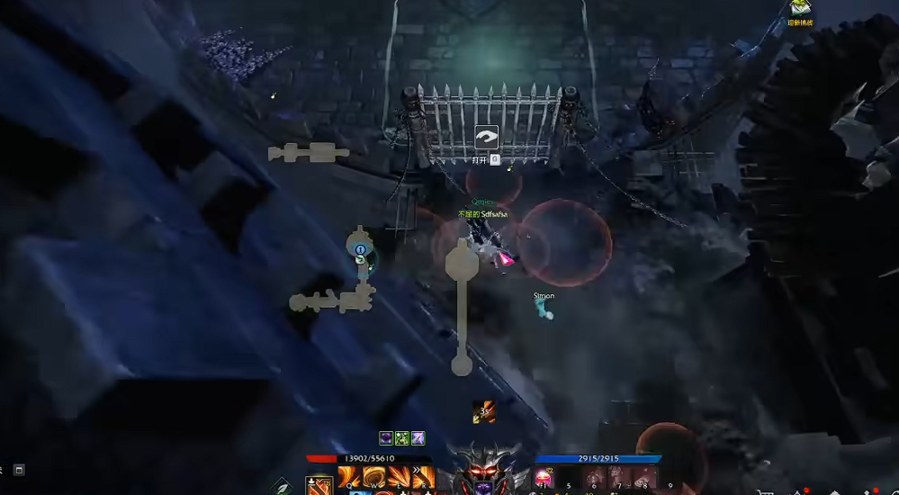 第二关的BOSS阿布雷什德会召唤滚石和陨石,屏幕会倾斜45度,石头从右向左滚动,被击中会被击飞。这时候需要留意队友身上的红色标记,被标记的人要贴近BOSS,让落下的陨石砸中BOSS才能打断机制。如果失败,石头会一直滚,场面会非常混乱。建议带上免疫击飞的技能或道具,比如督军的霸体或者时间停止药水,能大大降低难度。