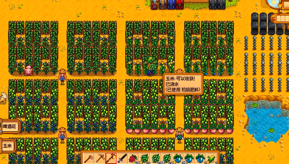 作物选择对耕种升级速度有显著影响。单次收获作物如南瓜、花椰菜的经验收益明显高于蓝莓等多次收获作物。虽然多次收获作物能提供持续收入,但就经验获取效率而言,集中种植高经验值的单次收获作物更为理想。同时需要注意作物的生长周期与季节匹配,避免因季节更替导致作物无法成熟。