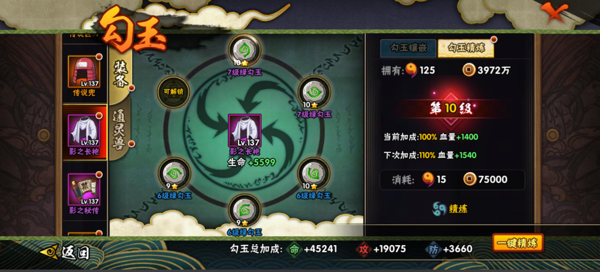 精炼勾玉需要消耗铜币和勾玉精华这类道具,铜币是基础消耗品,而勾玉精华可以通过任务、活动或者抽卡获得。精炼时要注意,不同级别的勾玉消耗的铜币数量不一样,普通勾玉可能只要1000铜币,高级勾玉则要上万。建议在精炼前先看看自己的资源储备,如果铜币不够可以多用勾玉精华替代部分消耗。精炼成功率不是百分百的,想要提高成功率可以尝试提升精炼等级,或者多准备些材料。