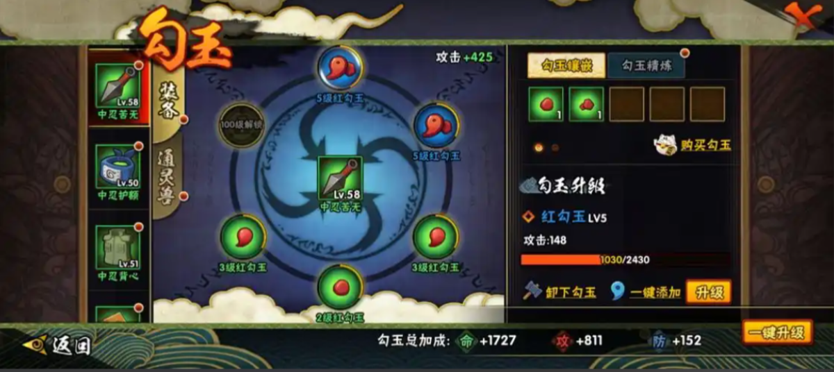 勾玉是咱们提升战力的重要道具,它能给装备和通灵兽镶嵌,带来攻击、防御、生命等属性加成。不同颜色的勾玉效果不一样,红色加攻击,蓝色加防御,青色加生命,紫色同时加防御和生命,黄色则兼顾攻击和生命。想要玩转勾玉系统,得先解锁镶嵌槽,这些槽位会随着等级提升逐步开放。勾玉本身也能升级和合成,等级越高带来的属性加成就越明显,特别是三级以上的勾玉,装上和卸下的战力差距会特别大。