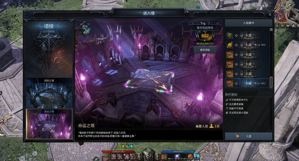 进入命运之塔前,玩家需做好充分准备。塔内战斗不允许组队,必须依靠个人实力完成挑战。建议提前提升装备品质、强化技能搭配,并携带足量药水以应对高强度战斗。命运之塔分为多个层级,每层难度递增,守护者的技能和战斗模式各异。挑战前需研究敌人机制,制定针对性策略。部分层级需优先击杀特定怪物,而生存关则考验走位和道具使用技巧。
