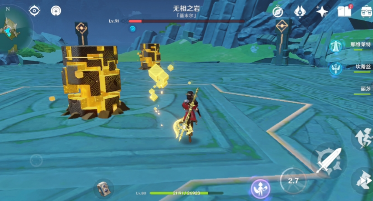 战斗开始时,先集中火力攻击无相之岩的本体,把它打到残血状态。这时候它会进入复苏阶段,在地面生成三根岩柱。一定要迅速切换到大剑角色,优先击碎这些岩柱。如果岩柱没被全部破坏,无相之岩会恢复一定血量,战斗就得重新开始。建议提前调整好队伍配置,确保有足够的输出和生存能力。