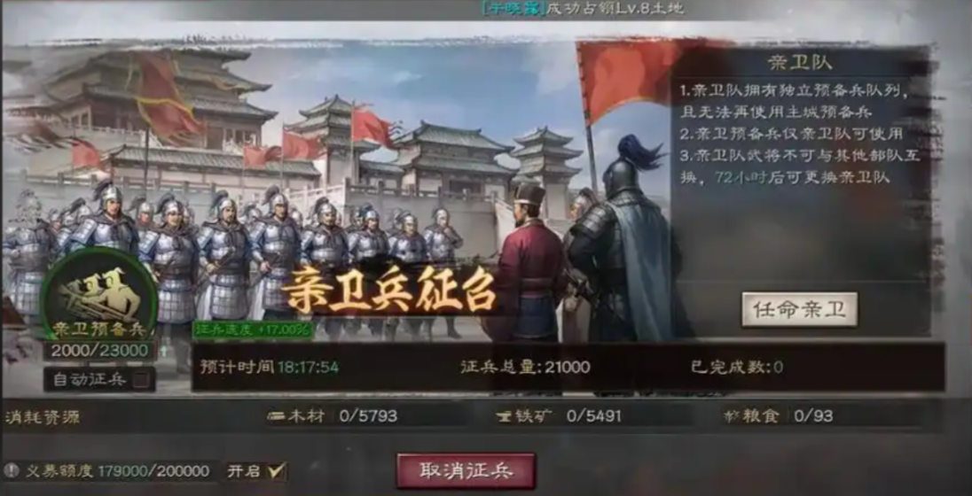 提升武将带兵数量是间接增加队伍战力的重要途径。武将每提升1级可增加100带兵上限,通过军营升级也能整体提高所有武将的带兵上限。军营同样位于城建军事栏目,需要君王殿达到7级才能解锁。预备兵的数量直接影响部队的快速补充能力,在部队回城状态下,可通过左下角的预备兵数量进行手动配置或快速分配。官职系统的晋升也会带来带兵数量的加成,通过完成任务和战斗胜利可逐步提升官职等级。