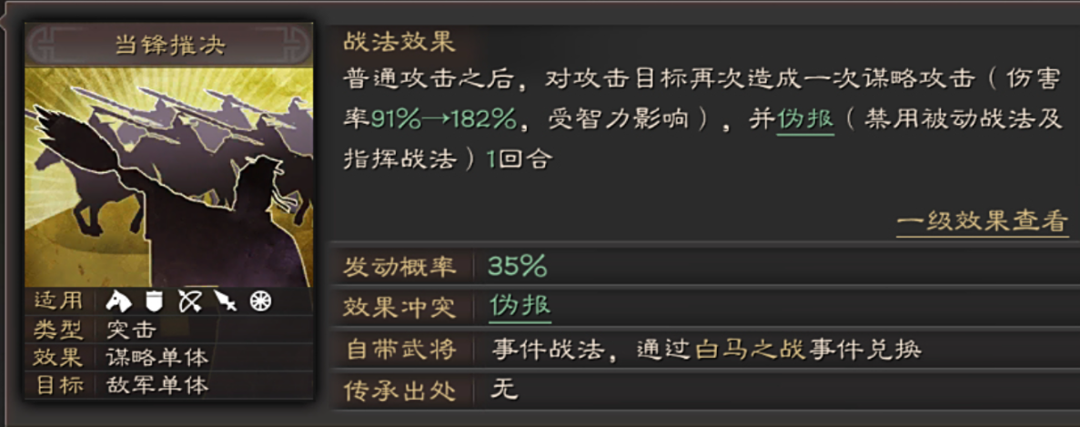 如果没办法第一时间解决折冲携带者,那就得想办法抵消它的抵御效果。抵御只能挡两次伤害,所以咱们可以用多段伤害的技能去消耗它。比如一些群体攻击或者连续攻击的战法,可以快速把抵御次数打掉,然后再集中火力输出主将。当锋摧决这种能禁用指挥战法的技能也是不错的选择,可以直接让折冲失效,不过要注意释放时机。