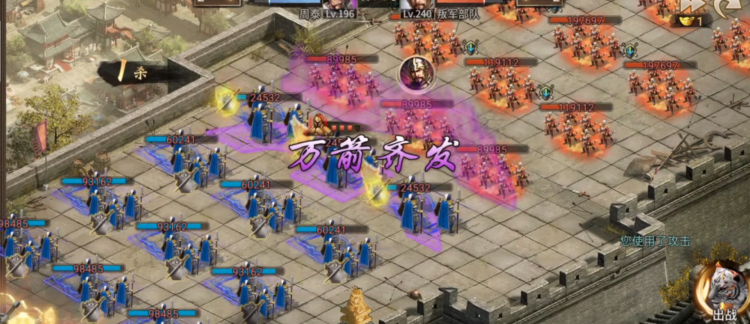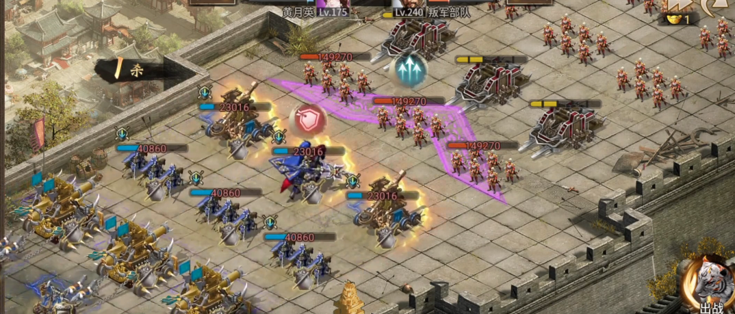 面对郝萌主将时要注意他的投石车技能,这时候可以切换防守姿态。如果用的是周泰,记得保留2.5排兵力应对主将,剩余1排90%血量就能过关。挂机打法在这里也适用,但前提是你的防御足够扎实。前四个部将的战车配置相同,主将战车会变化,所以打到主将阶段要更谨慎。