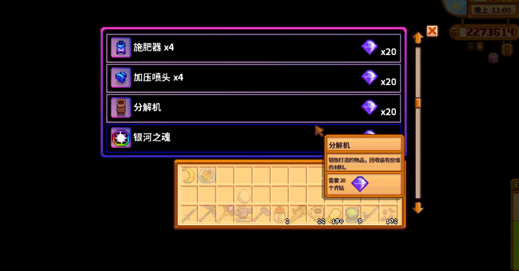 齐钻作为星露谷物语中的稀有货币,兑换优先级直接影响游戏进程效率。马笛是最具实用性的兑换物品,能够随时随地召唤坐骑,大幅提升移动效率,这对需要频繁往返于农场、矿洞和城镇的玩家尤为重要。分解机同样值得优先考虑,它能将无用物品分解为高价值原材料,实现资源循环利用。