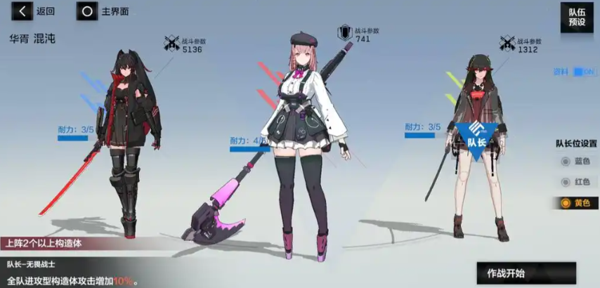 新手期的阵容搭配直接影响推图效率和资源获取速度。开局阶段建议优先培养一名主C角色,搭配辅助和装甲型构造体,形成均衡的队伍框架。主C推荐选择具备高爆发或持续输出能力的角色,例如烬燃、深红之渊或鸦羽,这些角色在前期能够快速清理敌人,降低操作压力。辅助角色可选择丽芙·蚀暗或仰光,提供治疗和增益效果,而装甲型角色如罗塞塔或神威能提供护盾和破甲支持,增强队伍生存能力。