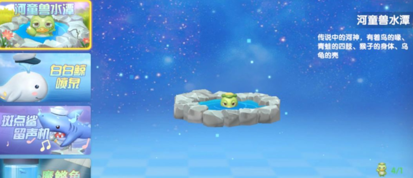 钓获河童后,可前往爱心广场寻找NPC大力进行兑换。在神秘商店中,河童可用于兑换专属家具河童兽水潭,该物品为温泉造型的装饰物,具有独特的展示效果。若未成功兑换,河童也可直接出售给商店,但兑换奖励的性价比远高于直接出售。游戏机制暂不支持玩家间直接赠送河童,但可通过展示功能分享钓获成果。