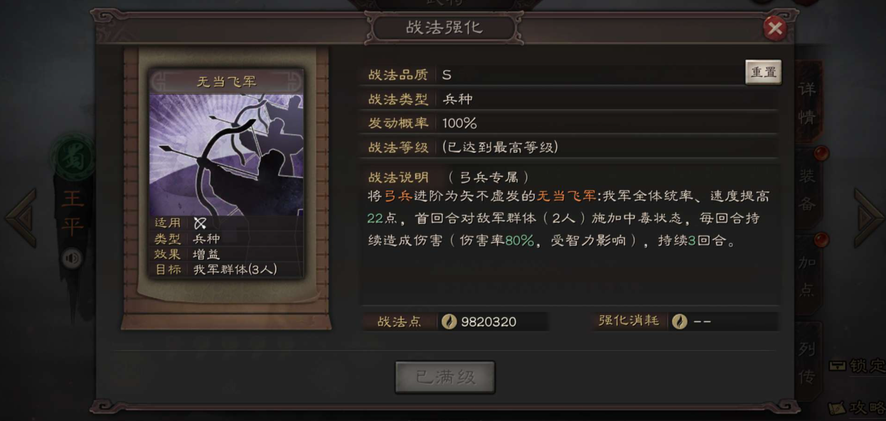 在选择和搭配A级战法时,需要考虑诸葛亮的兵种适应性,如弓兵和枪兵都是S级,能最大化他的控制优势。如果选择弓兵路线,无当飞军是非常合适的选择,因为它不仅补充伤害,还能强化队伍生存。搭配枪兵时,可以选择料事如神来减少敌方伤害,或者风声鹤唳来强化输出,确保诸葛亮在队伍中既能充当辅助又能补足伤害。在实战中,优先升级这些战法到满级,能显著提升战斗力,同时注意调整装备或加点来优化速度属性,让诸葛亮能抢先出手建立优势。根据战场情况灵活调整战法组合,能有效应对不同类型的敌人,比如面对高输出队伍时,降低伤害的戰法更实用。风声鹤唳的沙暴效果能持续施压,而料事如神的减伤效果在面对爆发阵容时尤其关键。